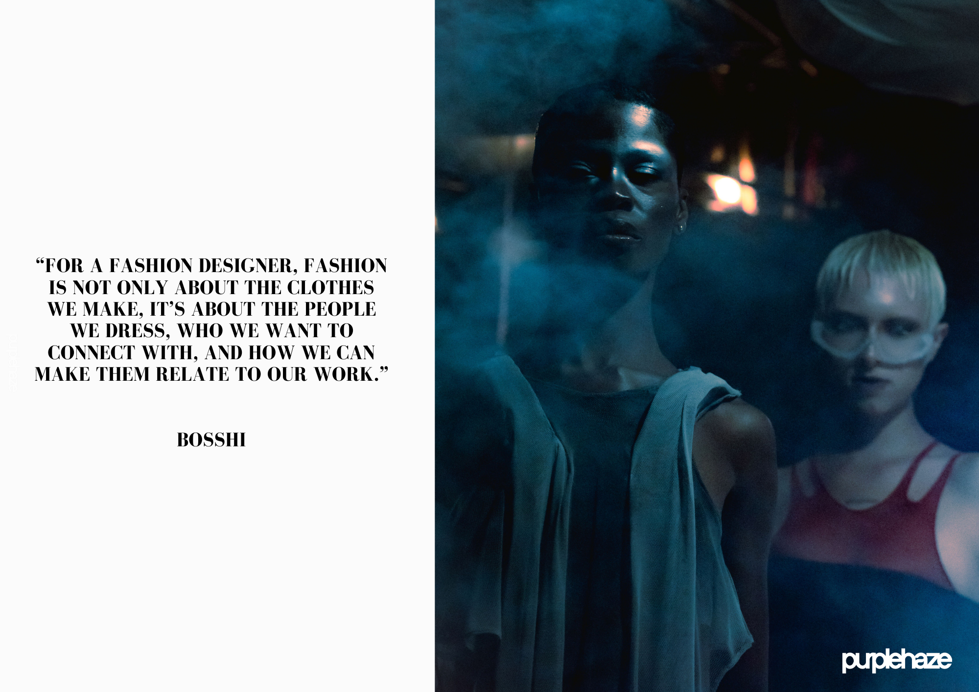 BOSSHI: What has always drawn me to fashion is how closely it can relate to other artistic disciplines. When I decided to launch a brand, my vision was to create something in which I could visually express the entire universe behind it. For a fashion designer, fashion is not only about the clothes we make, it’s about the people we dress, who we want to connect with, and how we can make them relate to our work. I was therefore very driven to create a presentation that could encompass movement, art, sound, and fashion, elements that work together to shape our individuality and personal expression