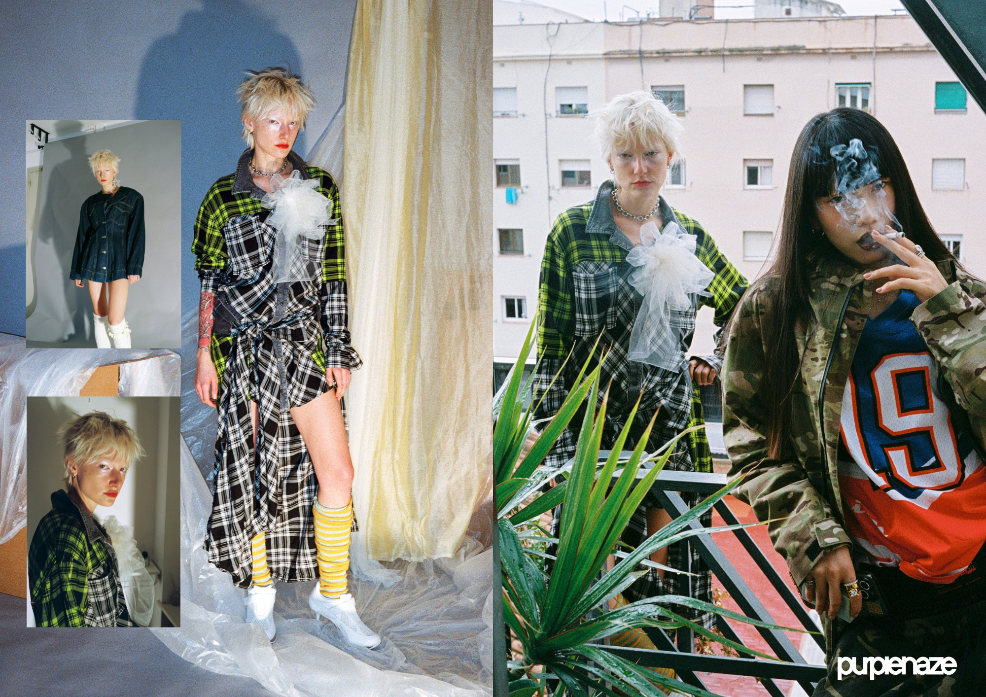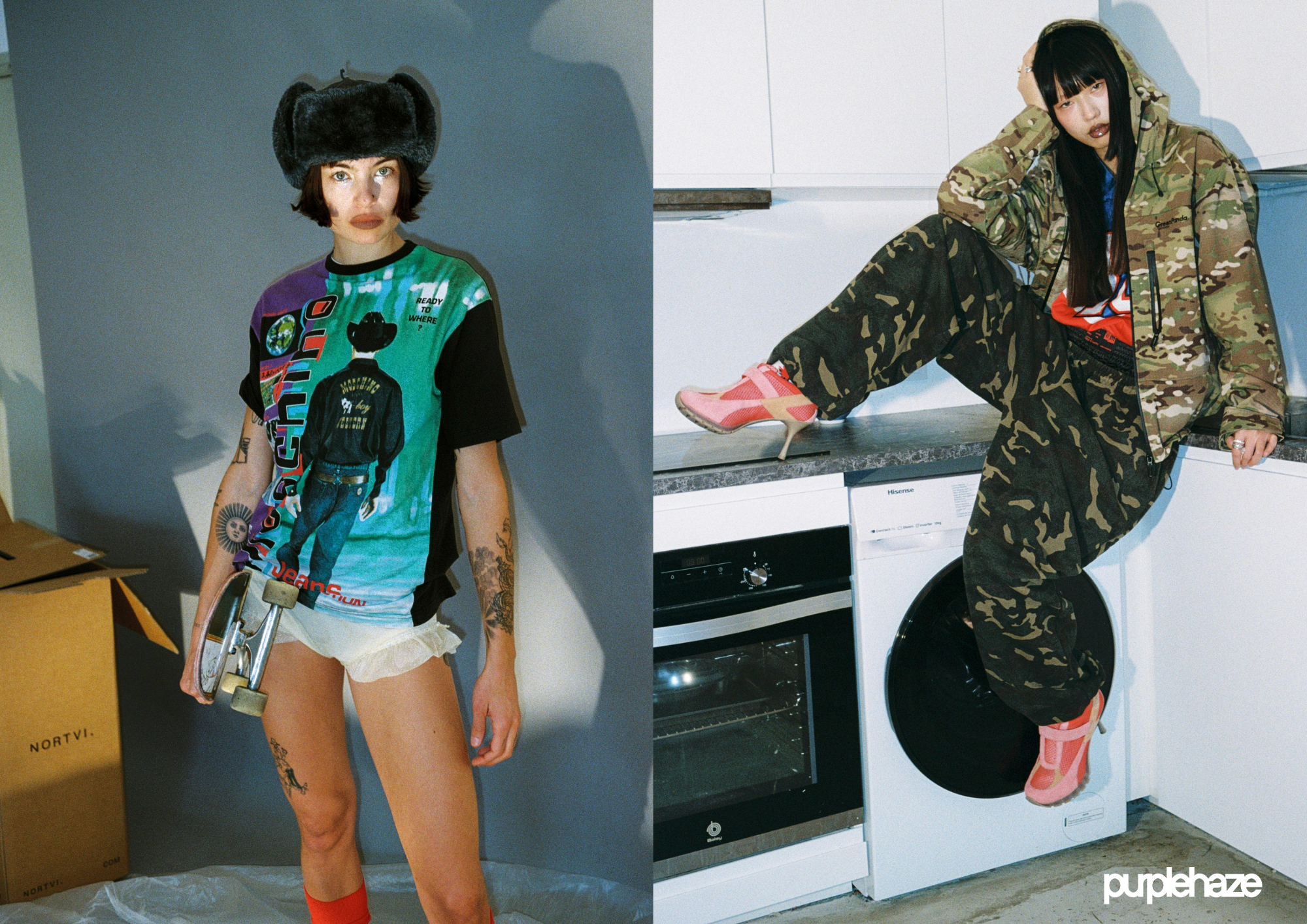 Left | D&G – Denim jacket (Fashion designer) aida.ruiiz – Hair Details Right | Ione wears Victor Von Schwarz – Pink t-shirt Chopova Lowena – Jacket Leo wears D&G – Denim jacket