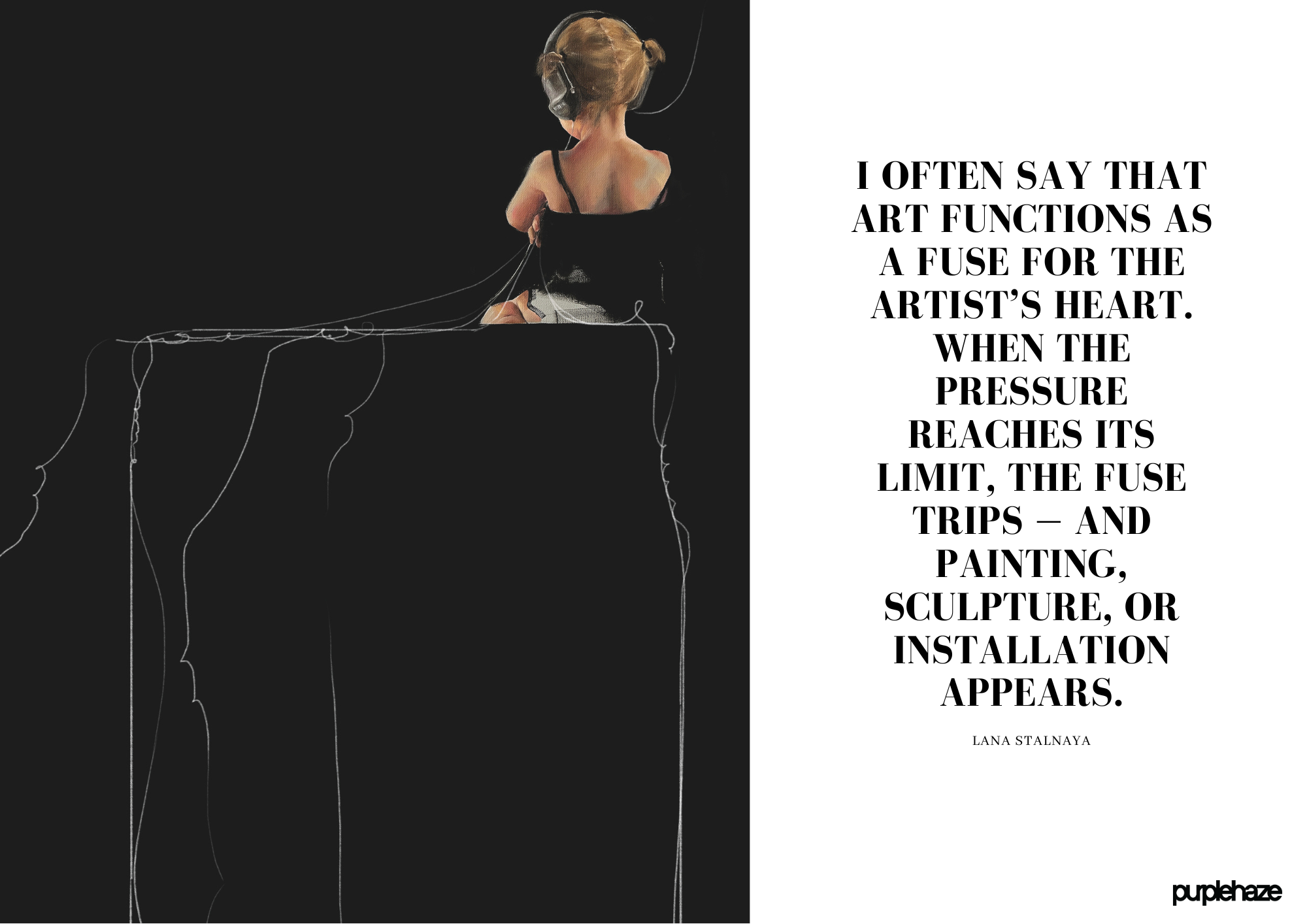 Lana Stalnaya approaches art as a system of signs fragile, layered, and never fully resolved. Moving between faith and doubt, structure and intuition, she constructs visual languages that echo larger historical, metaphysical, and emotional processes. Her practice unfolds as a search rather than a statement: a quiet investigation into fate, freedom, and the role of the individual within forces that exceed personal control. Drawing from science, religion, literature, and lived experience, Stalnaya treats art as a form of emotional engineering a way to navigate uncertainty without the illusion of fixed answers.
